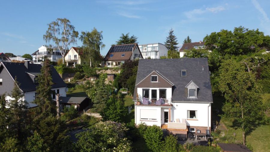 Eine Einliegerwohnung wurde im ehemaligen Keller, heute in Blicklage zum Rhein in Hanglageneu errichtet.